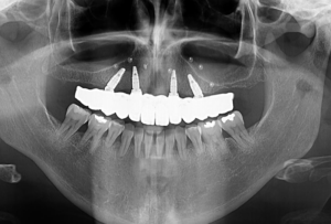 Fortunately, the All on 4 is fixed with screws, it can be taken out of the mouth, corrected if necessary, and returned to function.