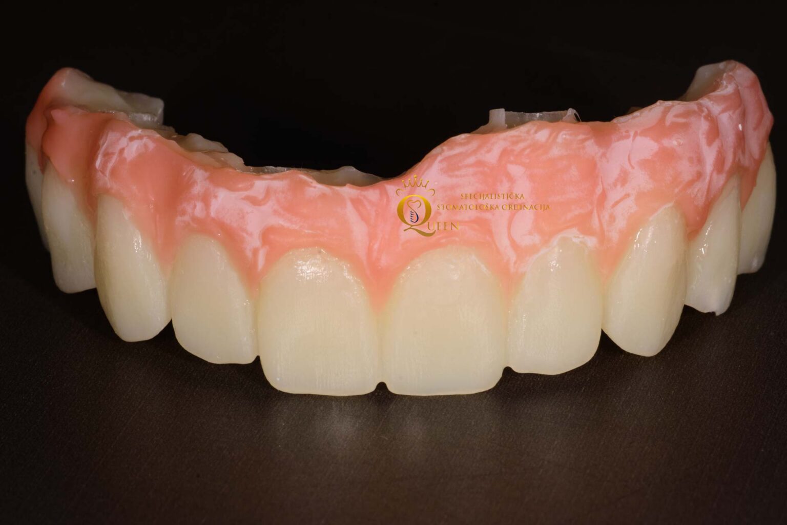 A beautiful smile is especially long-lasting when All on 4 is made of ceramic materials since they do not change color in the mouth. With acrylic or composite teeth, pigmentation will likely accumulate over time, but don`t worry. We, at the Queen have never made all on 4 with acrilic or composite. We always use high