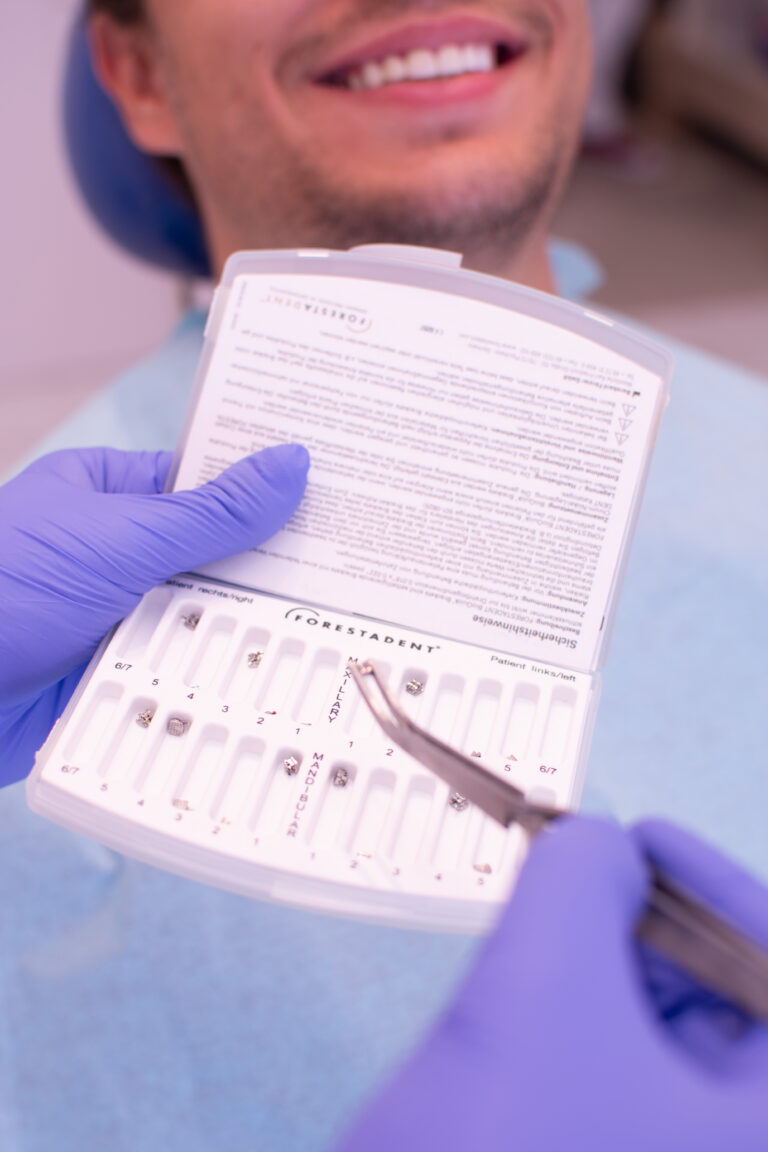 Placing braces on the teeth is completely painless and takes about 30-40 minutes. Anesthesia is not necessary, since the braces are simply glued to the teeth. It is common to place braces on the upper jaw first, in order for the patient to get used to the existence of a foreign body in the mouth. Shortly afterwards, in a month or two, the lower braces are placed. In some situations, it is possible that various splints, intermaxillary rubbers, screws, etc. are included in the therapy with braces which help achieve the results of therapy.