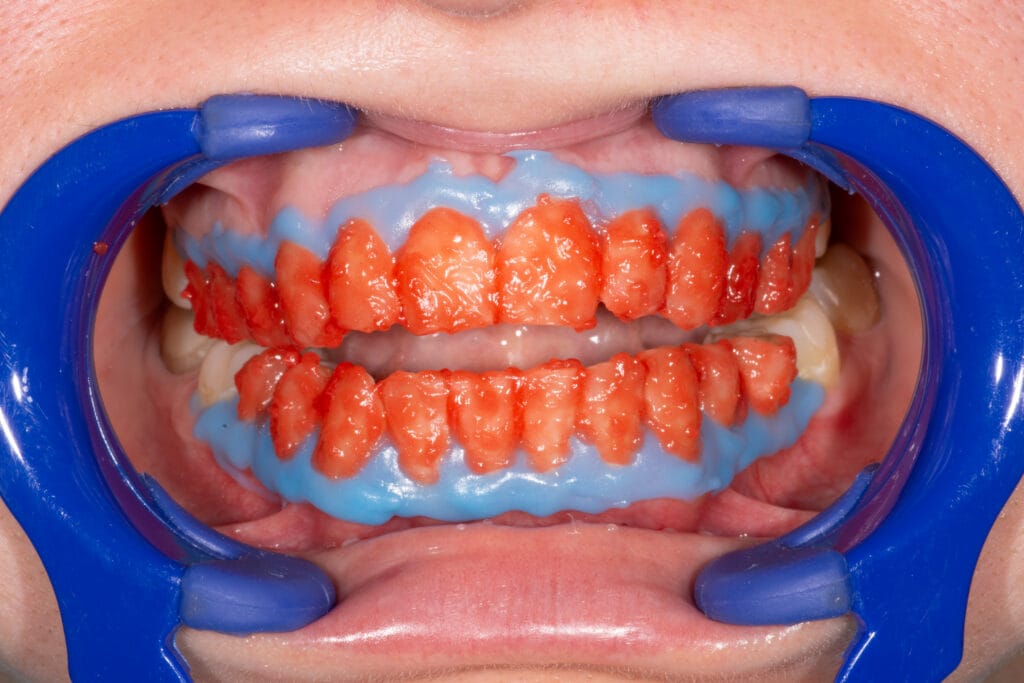 Home whitening involves taking an impression or scans of the patient’s teeth and making individual foils in which the whitening gel is placed.