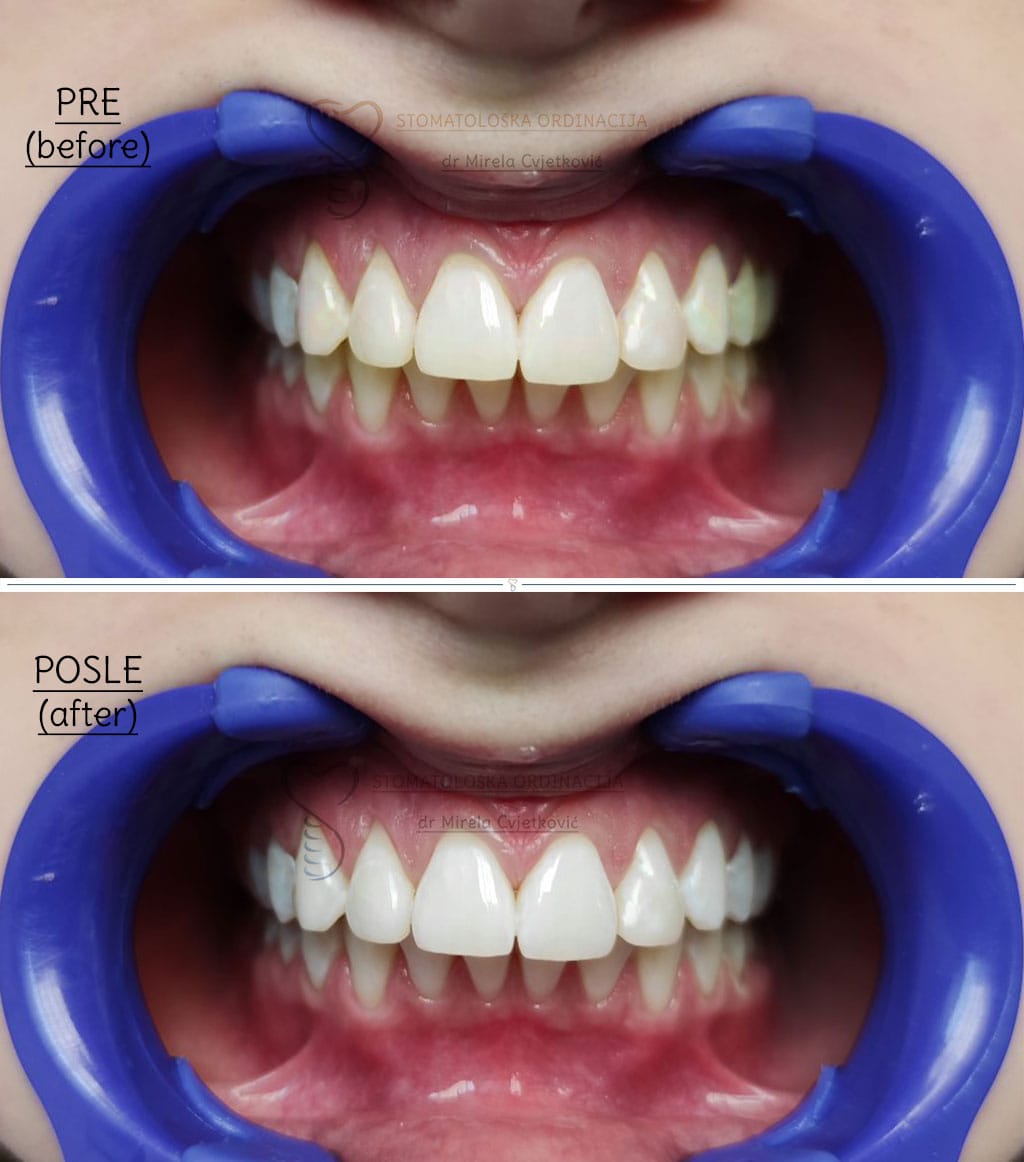 After 30-45 minutes of lamp treatment, or treatment only with a gel, the teeth become 2 to 4 shades lighter, which depends on many individual factors. The durability of teeth whitening is completely individual and depends on several factors.